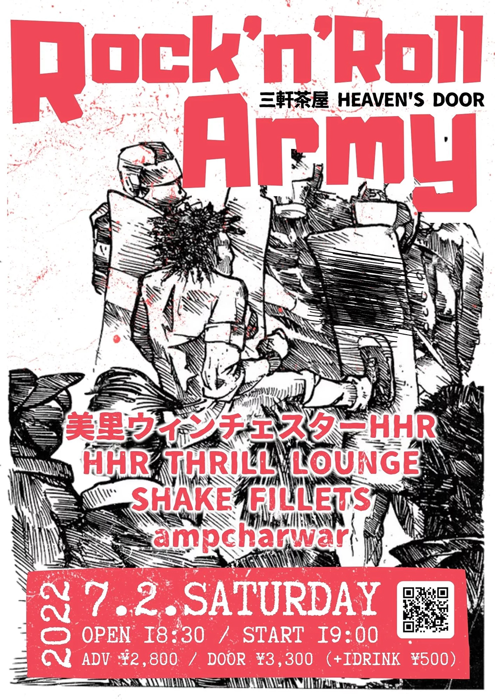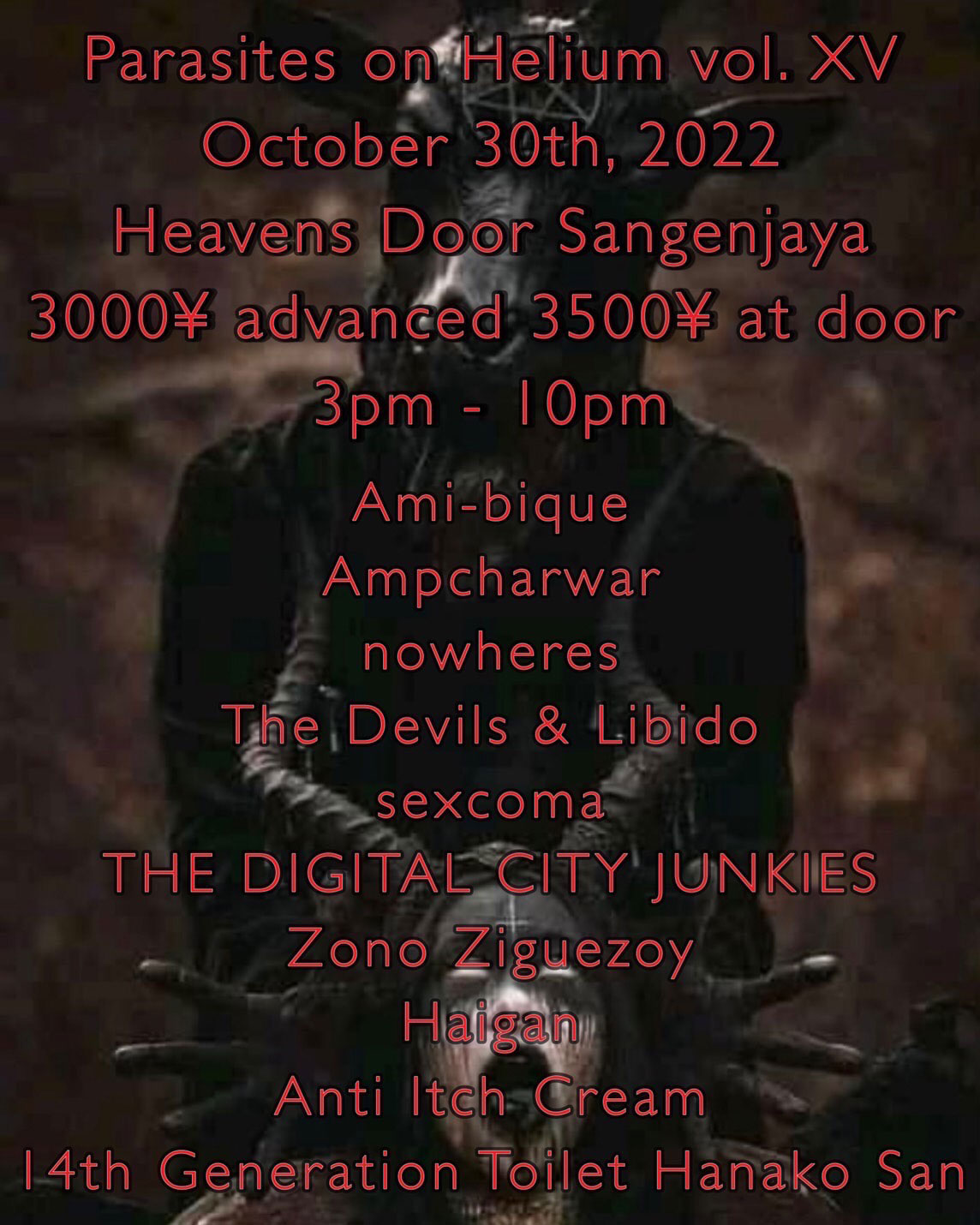 白熱したエネルギーを全放出するガールズ“enjoy”パンクス『THE JUNGLES!!!』が待望の久々出演決定!さらに三茶ハードコアのドン『SLANG BOOGIE』、桝麻Kレージクイーン『デッドバンビーズ』、進化を続けるモダンインダストリアル『ampcharwar』、撫?Lかなユニークロックンロール『SHAKE FILLETS』も出演!!