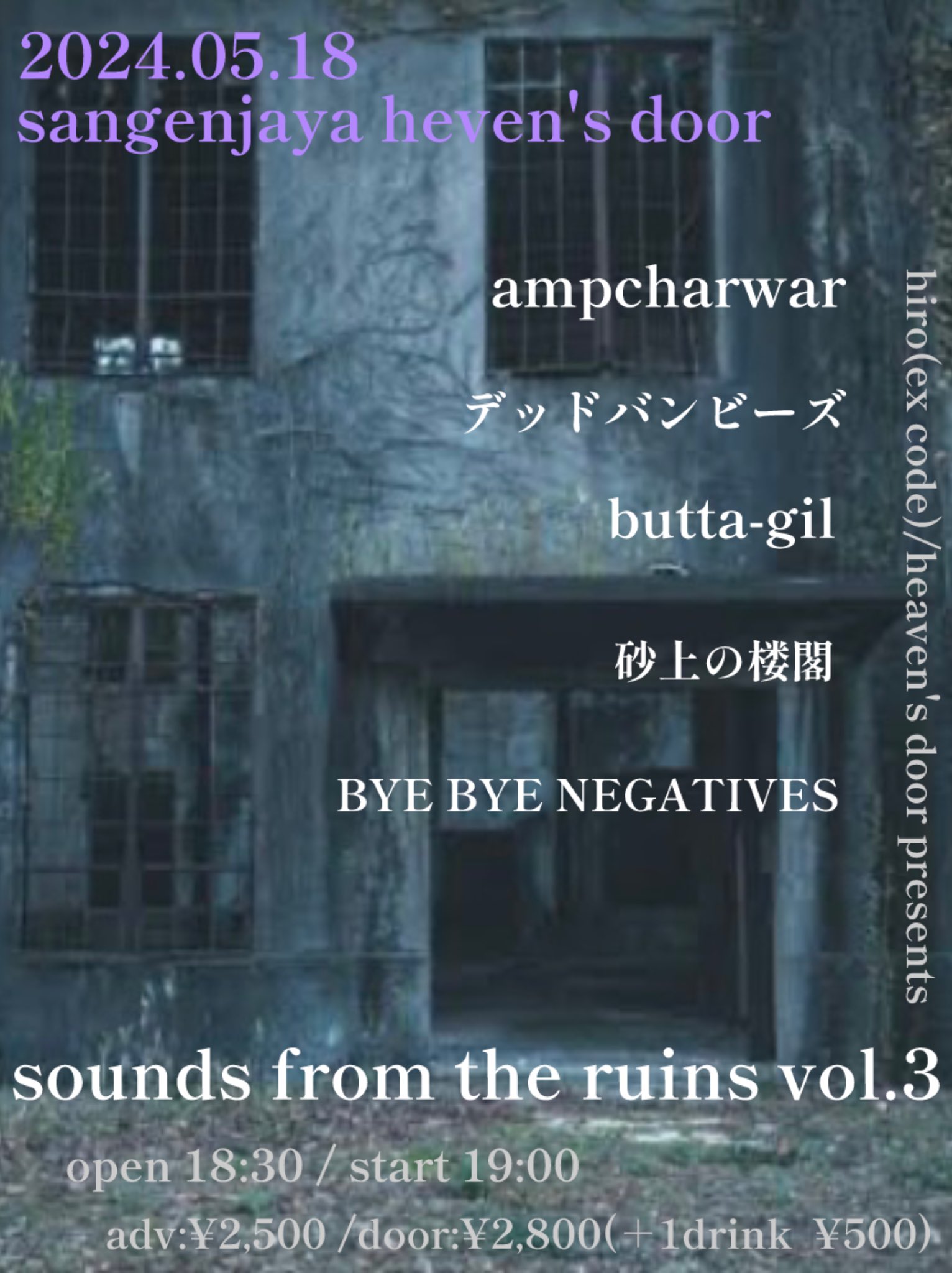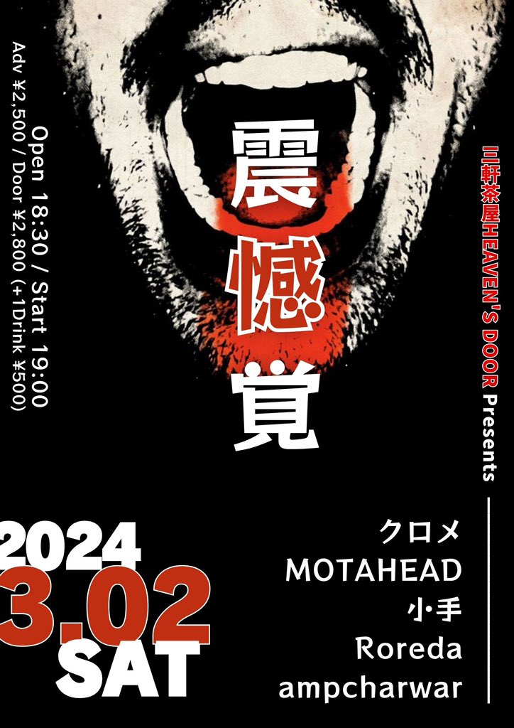ADV ¥2500 / DOOR ¥3000 [+1drink(¥600)]